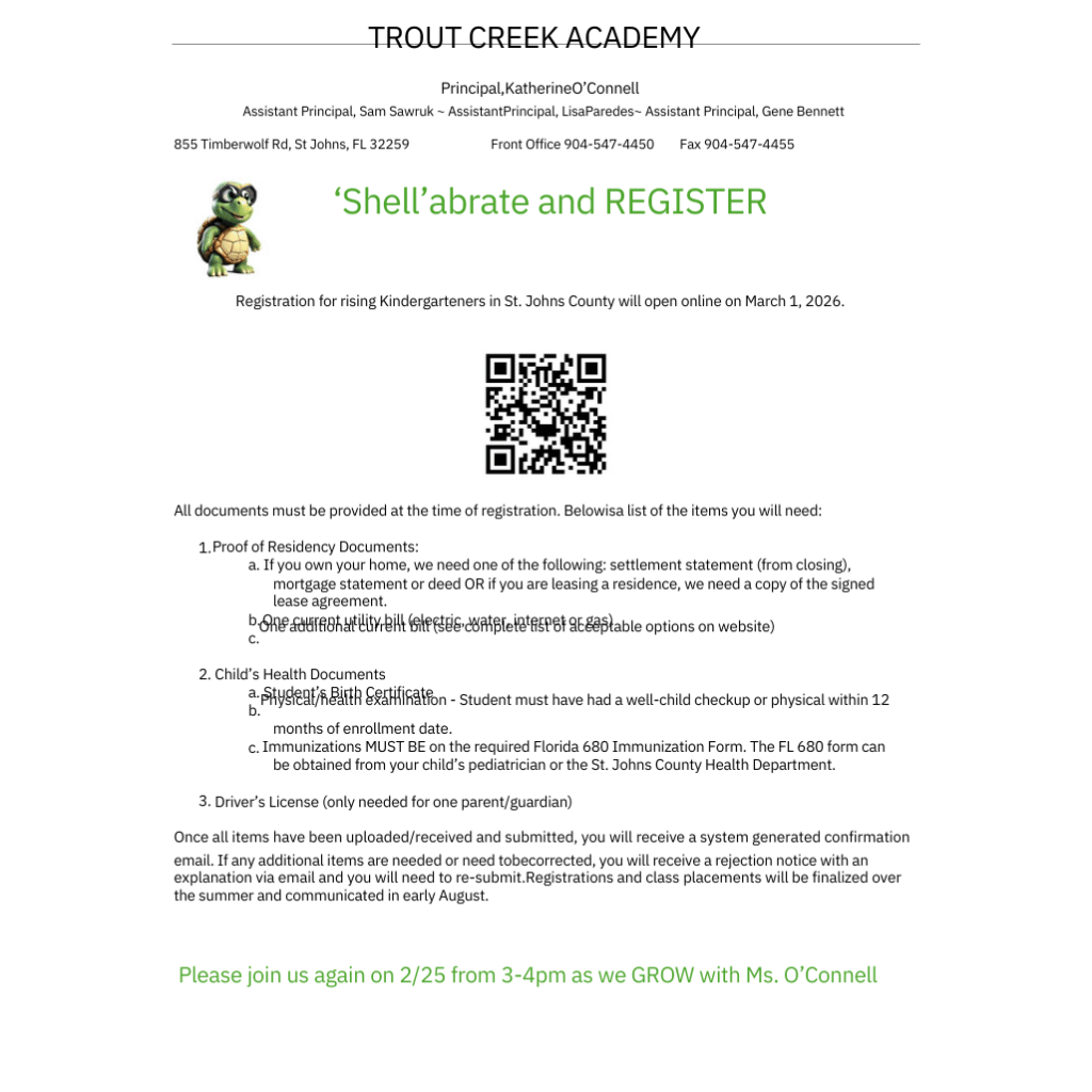 - Proof of residence per the Residency and Guardianship Policy located at www.stjohns.k12.fl.us/student/residency/